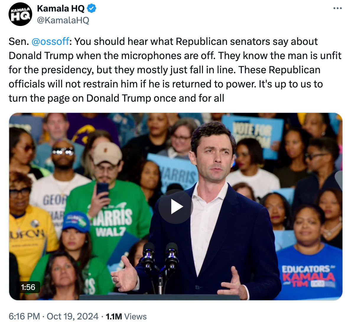I'm on the road in Georgia barnstorming for the Harris-Walz campaign.