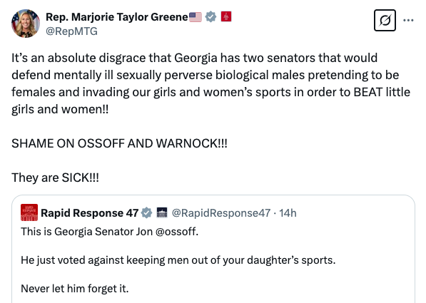 They're not attacking Jon because they care about protecting women or fairness in sports—they're doing it because they think this race is their best shot to flip a Senate seat in 2026.