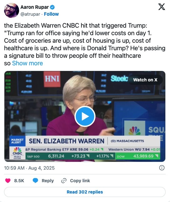 Elizabeth Warren recently laid it out in plain terms: Trump promised to lower costs on day one—groceries, housing, health care—but look around.