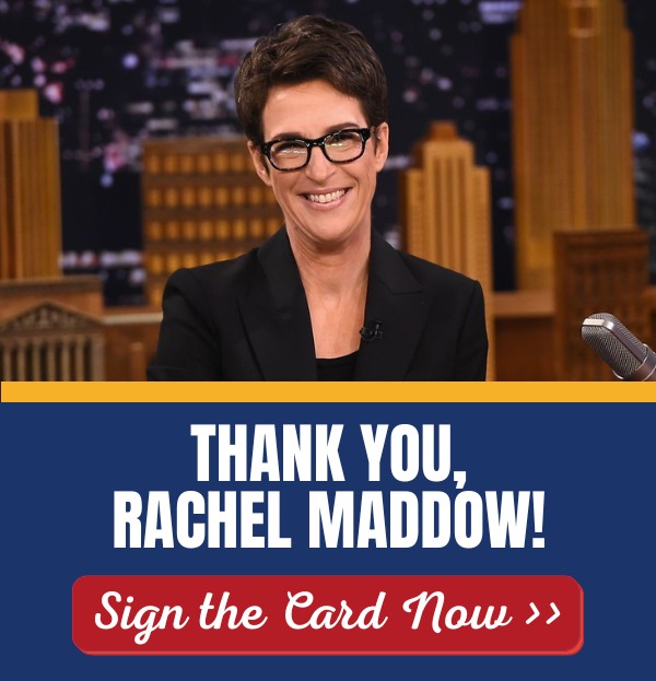 SIGN THE CARD: THANK YOU, RACHEL MADDOW! >>Thank you for signing,