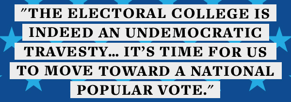 The electoral college is indeed an undemocratic travesty … It's time for us to move toward a national popular vote.