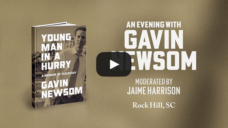 An Evening with Gavin Newsom in Rock Hill, SC | Young Man in a Hurry Book Tour