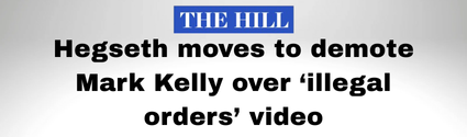Hegseth has announced plans to formally censure Mark Kelly, demote him in retirement, and slash his military pension, all because Kelly participated in a video reminding service members of a basic principle: they have a duty to refuse unlawful orders and defend the Constitution.