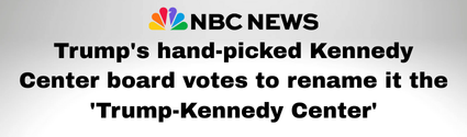 FIRST: Trump installed his cronies on the Kennedy Center board and they renamed it after him.