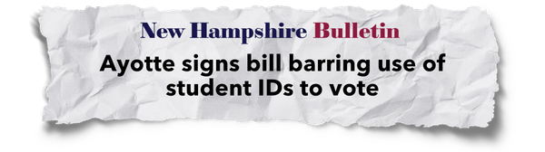 Here in New Hampshire, just 48 hours after Donald Trump’s executive order against absentee voting and voting by mail, Governor Kelly Ayotte signed a new law making it tougher to vote in person.